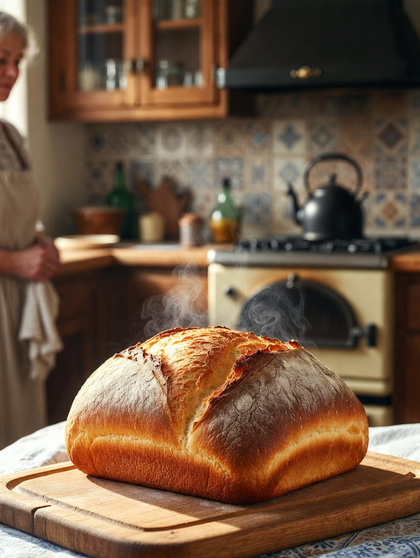 The smell of fresh bread filled the room. His grandmother placed the loaf on the table and smiled. She pointed for me to sit down. “Before we eat,” she said gently, “we pray.”